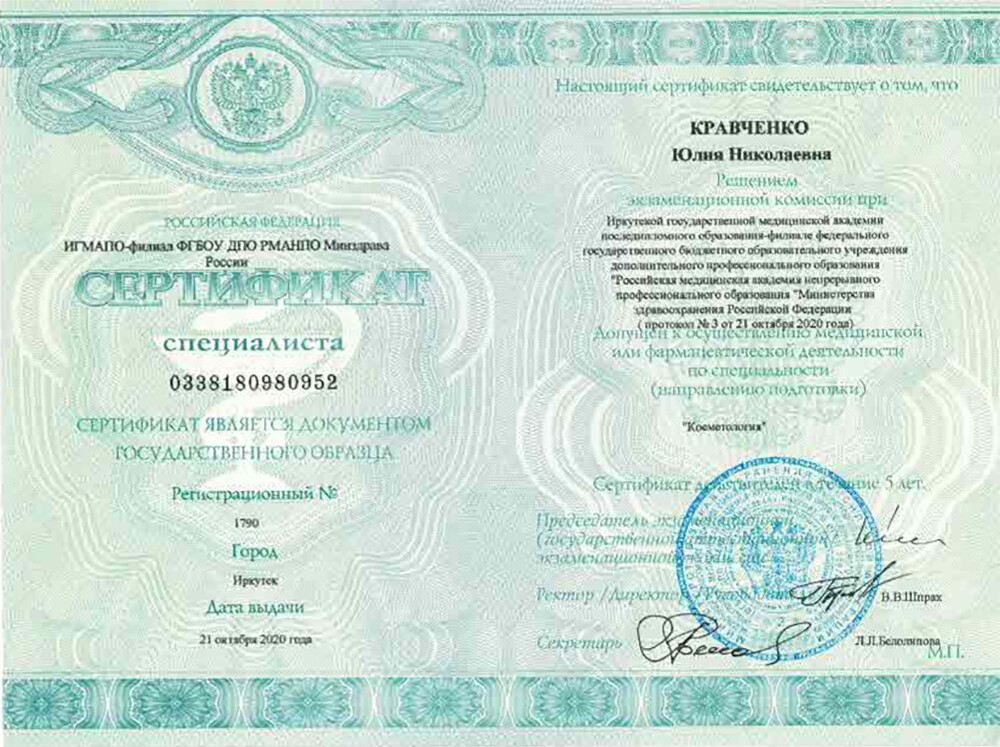 Все наши косметологи имеют большой опыт и все необходимые сертификаты. Посмотреть подробнее о наших специалистах можно выше